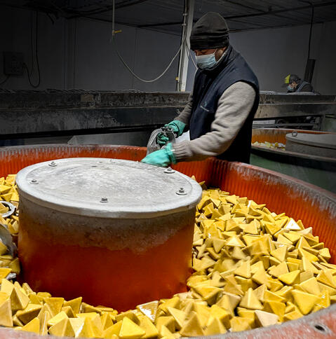 Tumbling is a mechanical finishing process used to refine the surface of metal components