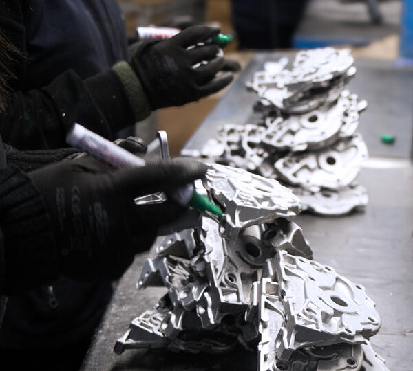 Post-tumbling visual inspection examines metal components exiting the vibratory finisher: the operator verifies surface quality, edge rounding, and the absence of defects by inspecting each part on a conveyor belt or a light-colored workbench. It detects embedded abrasive residues, chemical streaks, chipping, residual burrs, or color alterations. The process takes a few seconds per part and allows for the identification of anomalies in the vibratory finishing process—such as media wear, insufficient cycle time, or incorrect chemical solution concentration—requiring immediate corrective actions.